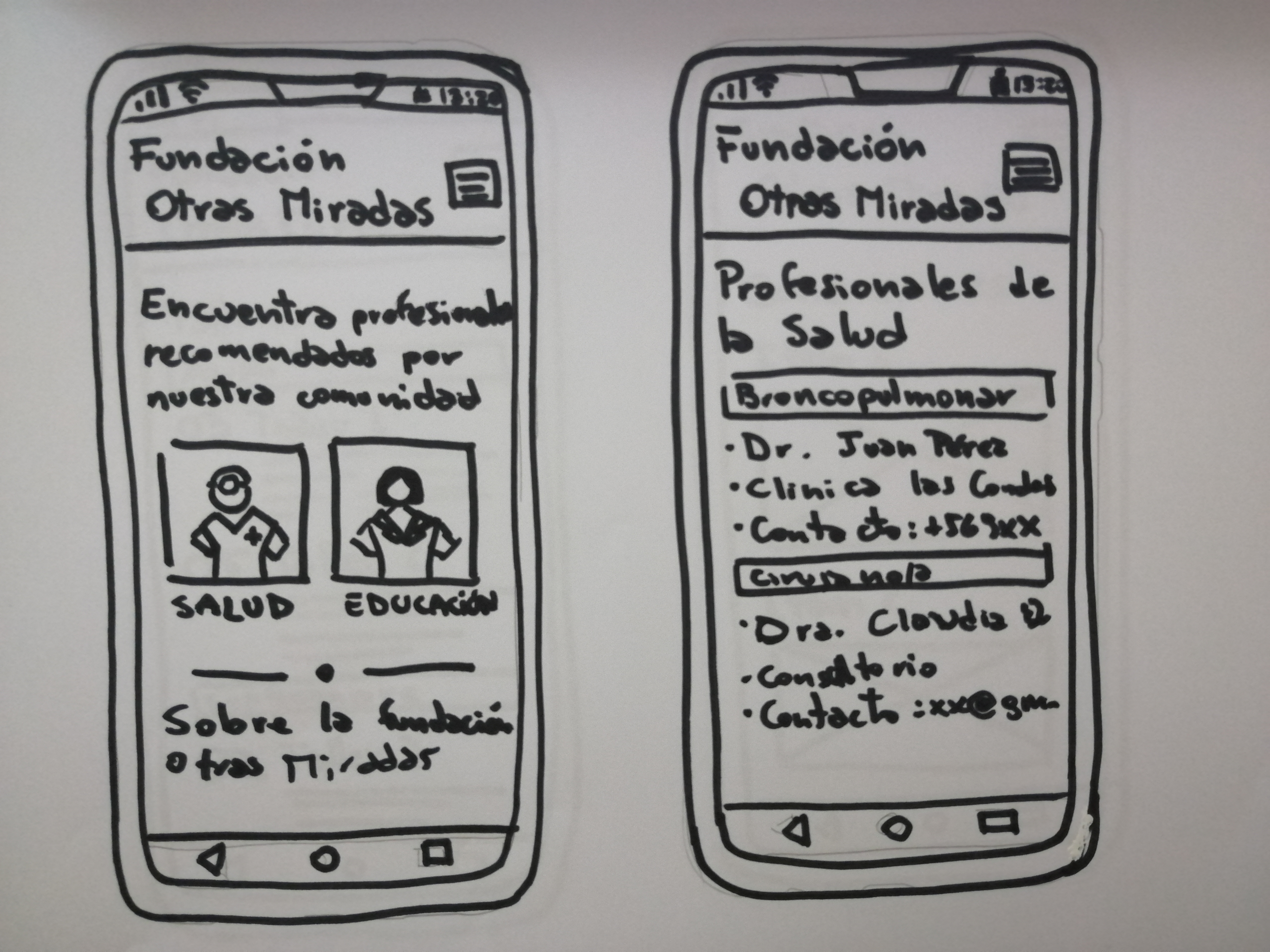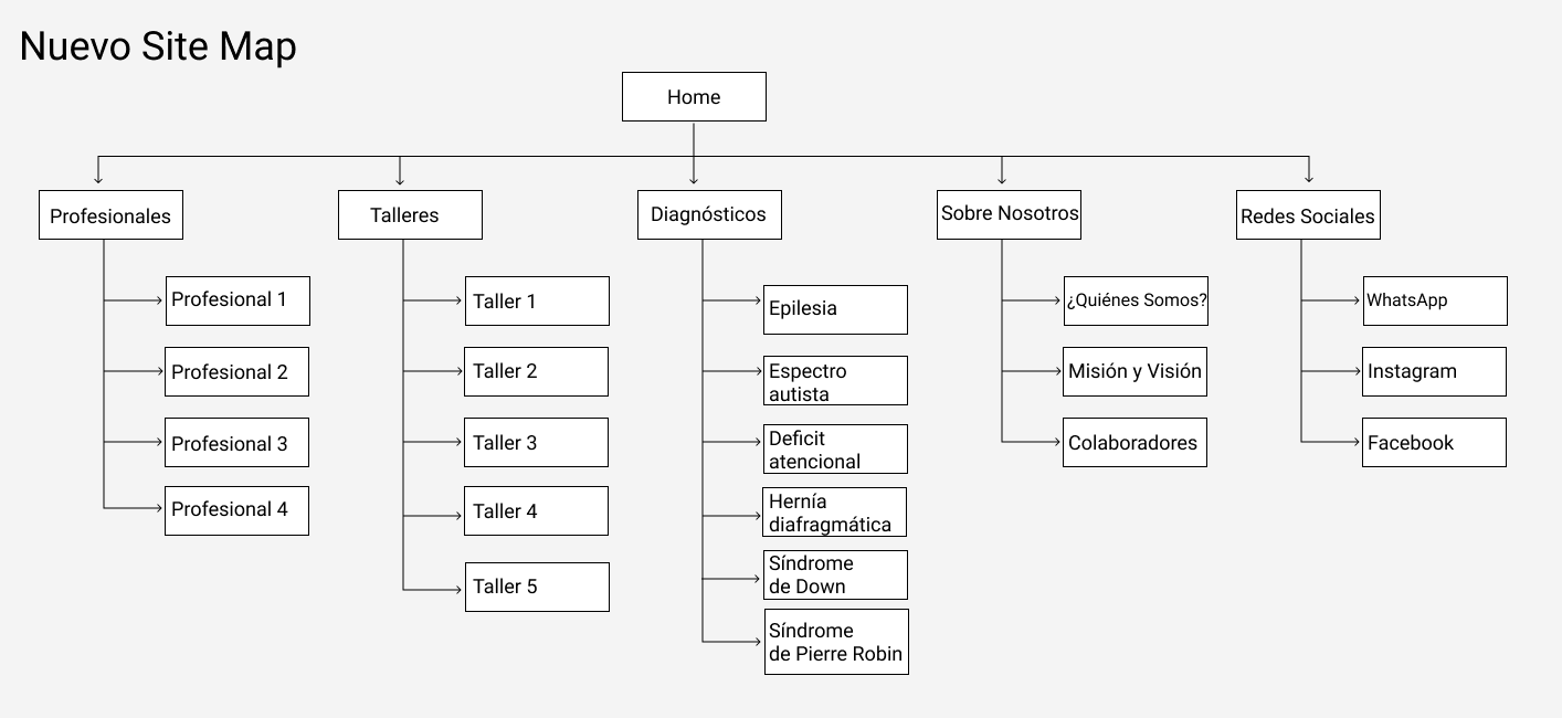 “Profesionales”, “Talleres”, “Sobre Nosotros” y “Diagnósticos”. Este último concepto escogido en conjunto