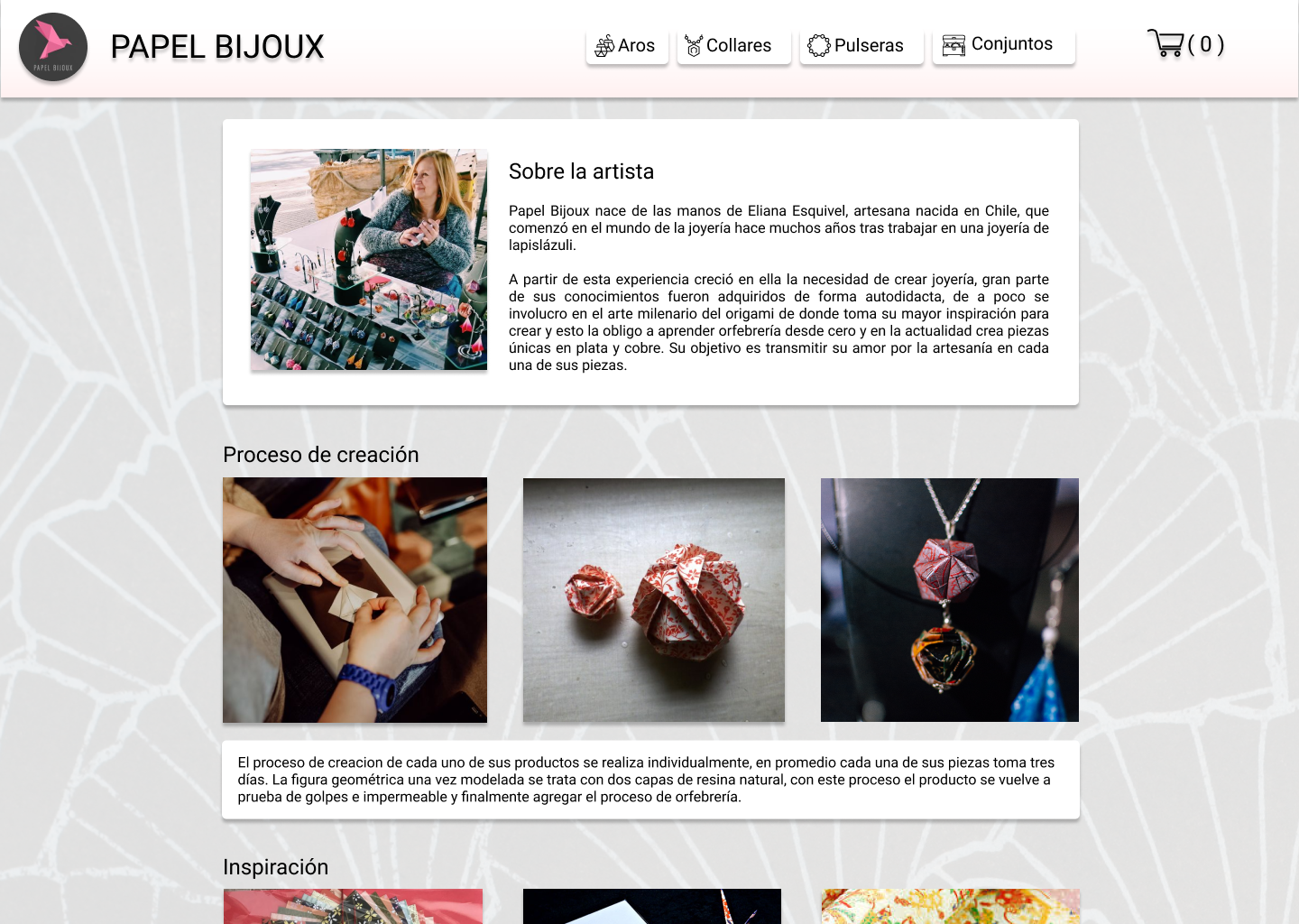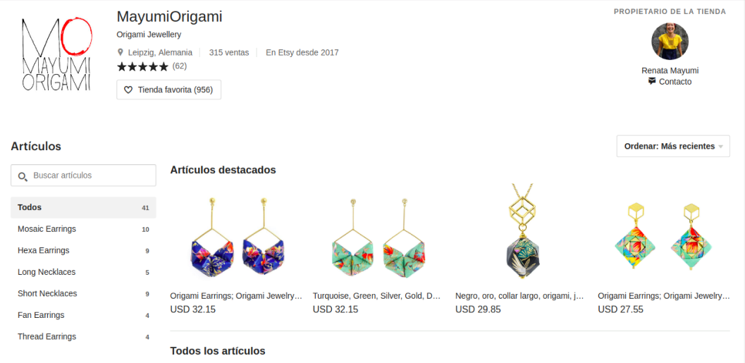 la creadora de las piezas, la calidad de los materiales y la tradición del origami en sus