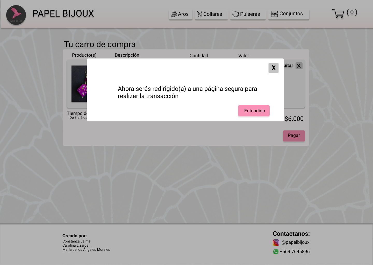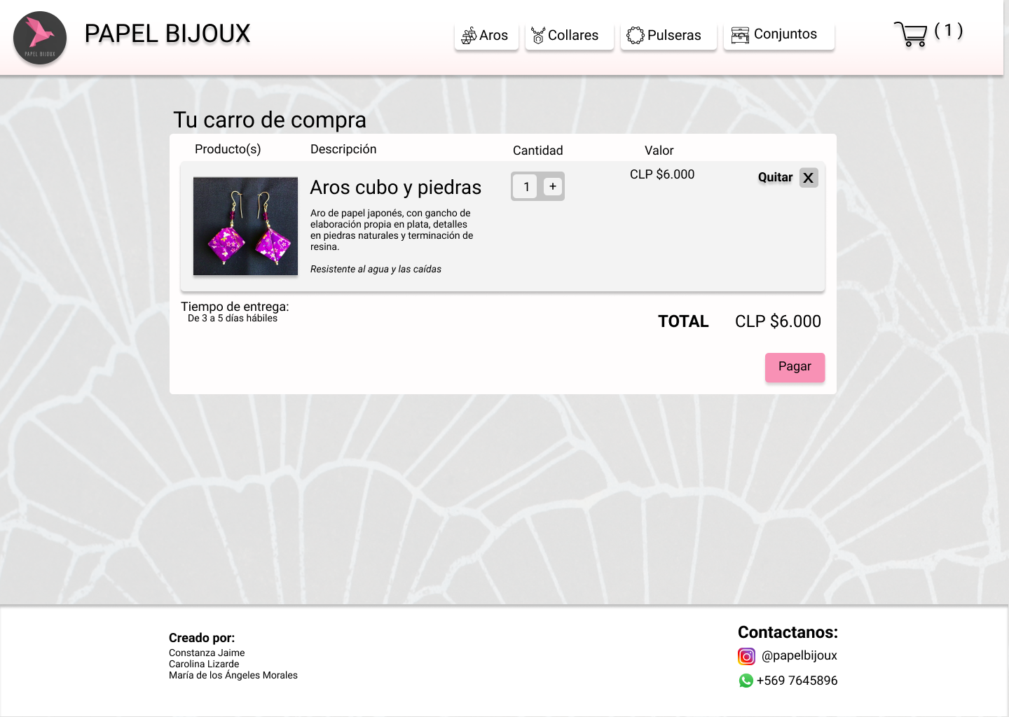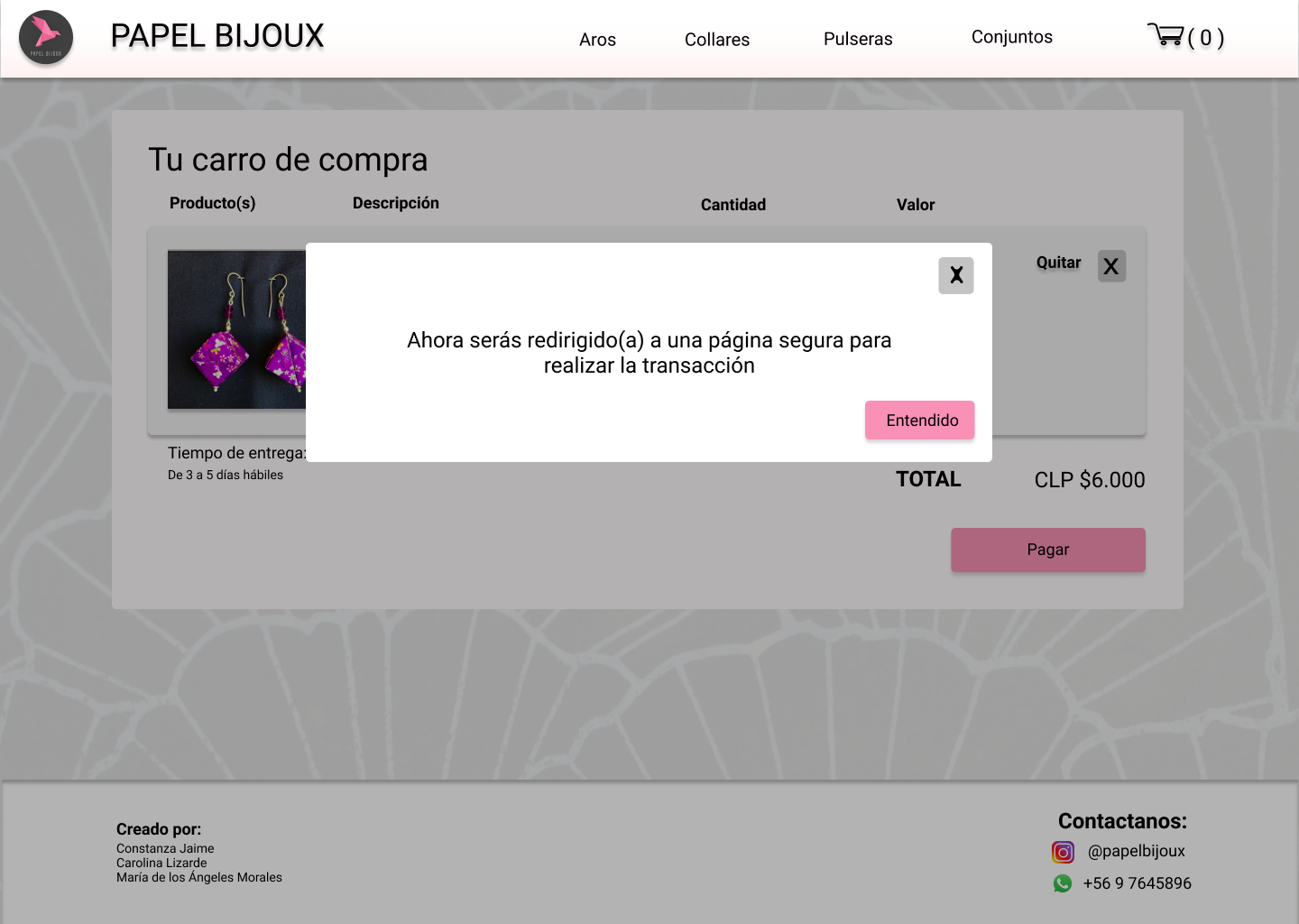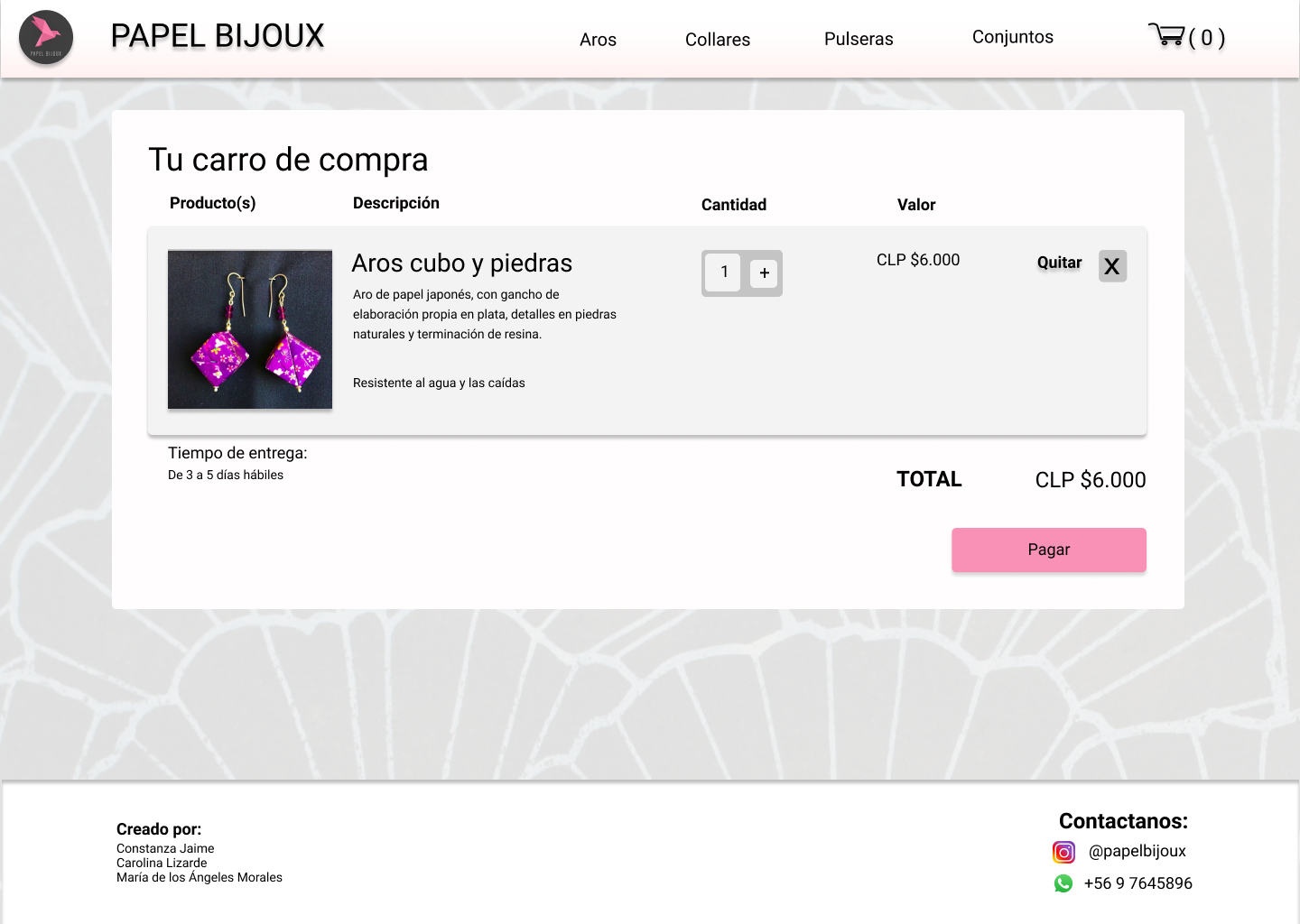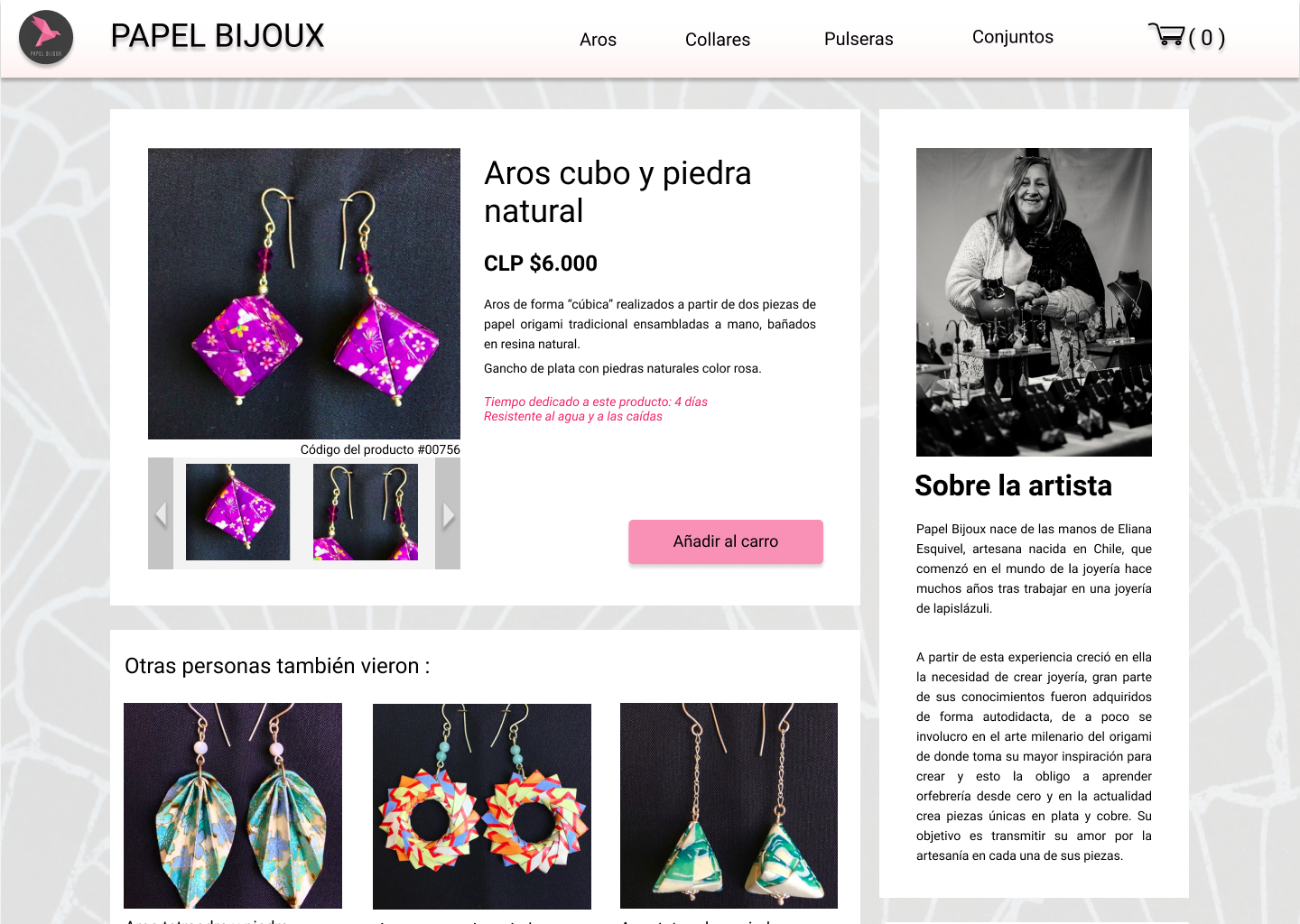 valor del proceso de elaboración, y como parte culmine, incluir el producto al carro de compra.
